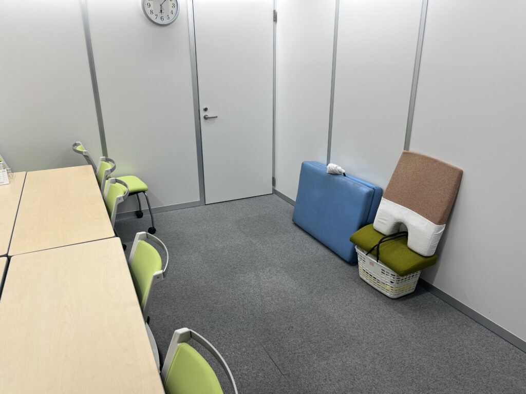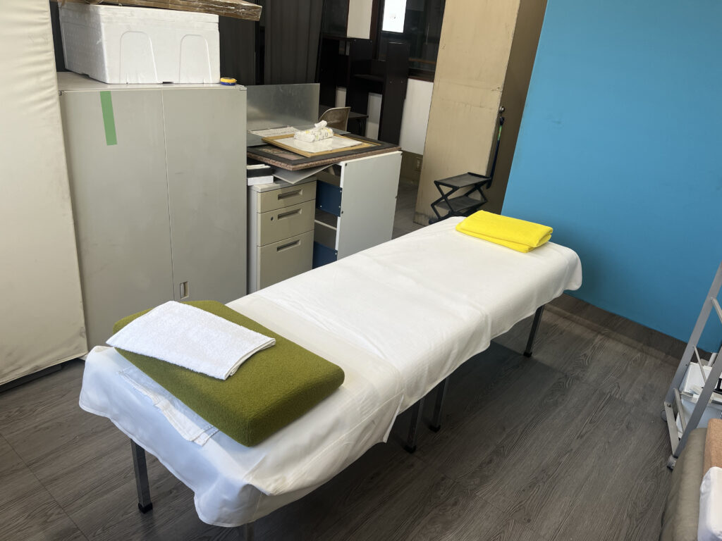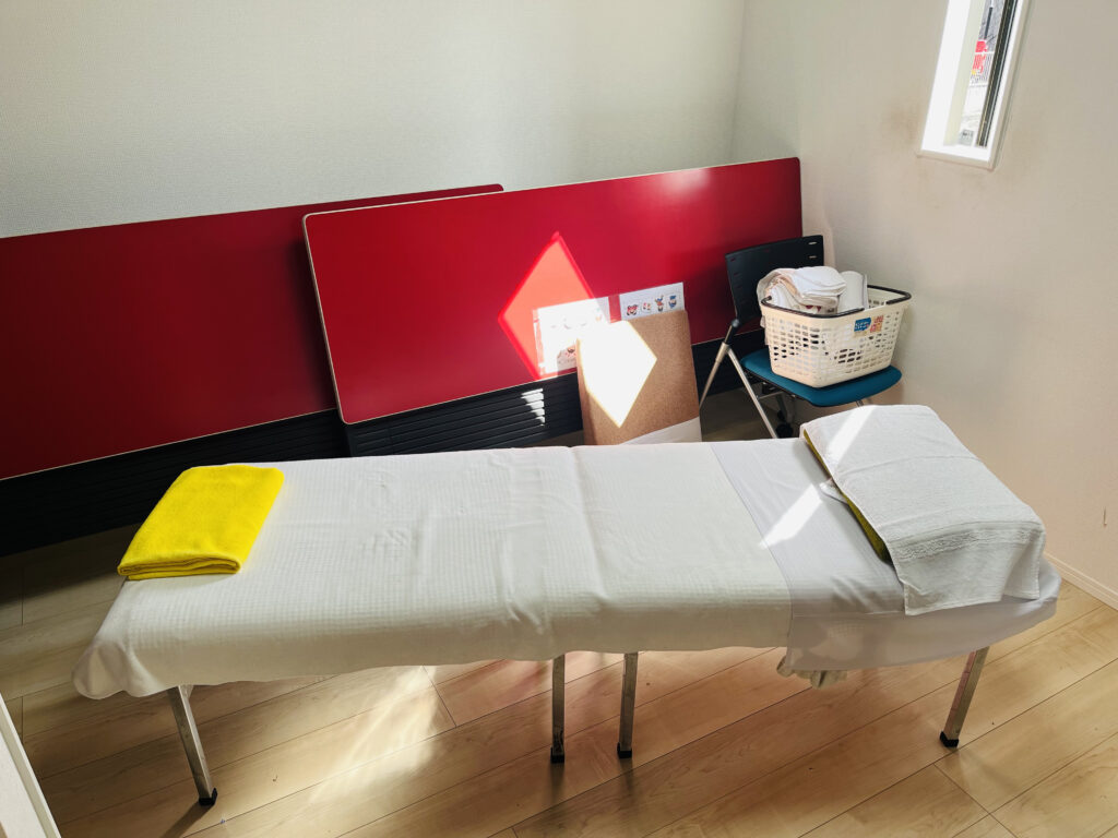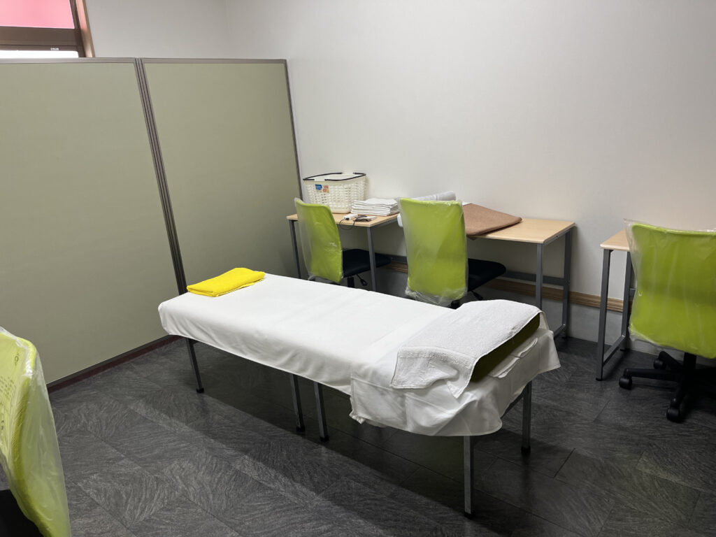 普段お使いの会議室や、パーテーションで区切った休憩スペース等で問題ありません。専用の整体ベッドやタオル等の備品はすべて当院で持参いたします。