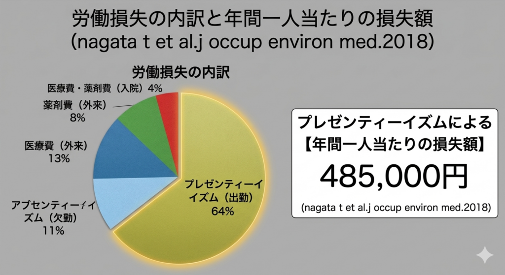 これは、集中力の低下、ミスの増加、判断の遅れとなって、貴社の利益を静かに削り続けています。 (nagata t et al.j occup environ med.2018)